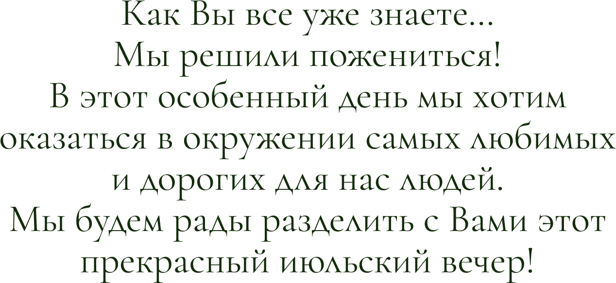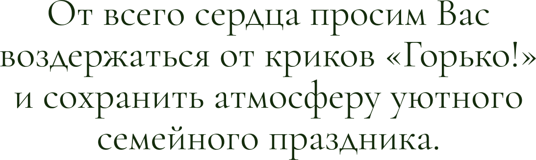 [{"lid":"1709846659479","ls":"10","loff":"","li_type":"in","li_title":"\u0412\u0430\u0448\u0435 \u0418\u043c\u044f \u0438 \u0424\u0430\u043c\u0438\u043b\u0438\u044f ","li_ph":"\u0418\u0432\u0430\u043d \u0418\u0432\u0430\u043d\u043e\u0432, \u041c\u0430\u0440\u0438\u044f \u0418\u0432\u0430\u043d\u043e\u0432\u0430","li_req":"y","li_nm":"\u0412\u0430\u0448\u0435 \u0418\u043c\u044f \u0438 \u0424\u0430\u043c\u0438\u043b\u0438\u044f "},{"lid":"1709846659480","ls":"20","loff":"","li_type":"rd","li_title":"\u041f\u043b\u0430\u043d\u0438\u0440\u0443\u0435\u0442\u0435 \u043b\u0438 \u0412\u044b \u043f\u0440\u0438\u0441\u0443\u0442\u0441\u0442\u0432\u043e\u0432\u0430\u0442\u044c \u043d\u0430 \u0441\u0432\u0430\u0434\u044c\u0431\u0435?","li_req":"y","li_variants":"\u0414\u0430, \u0441 \u0443\u0434\u043e\u0432\u043e\u043b\u044c\u0441\u0442\u0432\u0438\u0435\u043c!\n\u041a \u0441\u043e\u0436\u0430\u043b\u0435\u043d\u0438\u044e, \u043d\u0435 \u0441\u043c\u043e\u0433\u0443","li_radcb":"rb","li_nm":"\u041f\u043b\u0430\u043d\u0438\u0440\u0443\u0435\u0442\u0435 \u043b\u0438 \u0412\u044b \u043f\u0440\u0438\u0441\u0443\u0442\u0441\u0442\u0432\u043e\u0432\u0430\u0442\u044c \u043d\u0430 \u0441\u0432\u0430\u0434\u044c\u0431\u0435"}]