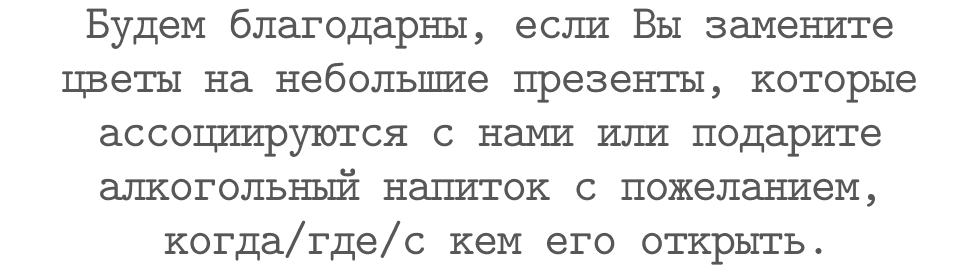 [{"lid":"1655212160877","ls":"10","loff":"","li_type":"in","li_title":"\u0412\u0430\u0448\u0435 \u0424\u0418\u041e:","li_ph":"\u0418\u0432\u0430\u043d \u0418\u0432\u0430\u043d\u043e\u0432 \u0418\u0432\u0430\u043d\u043e\u0432\u0438\u0447, \u041c\u0430\u0440\u0438\u044f \u0421\u0435\u043c\u0451\u043d\u043e\u0432\u0430 \u0418\u0432\u0430\u043d\u043e\u0432\u043d\u0430","li_req":"y","li_nm":"\u0412\u0430\u0448\u0435 \u0424\u0418\u041e:"},{"lid":"1655212160878","ls":"20","loff":"","li_type":"rd","li_title":"\u041f\u043b\u0430\u043d\u0438\u0440\u0443\u0435\u0442\u0435 \u043f\u0440\u0438\u0441\u0443\u0442\u0441\u0442\u0432\u043e\u0432\u0430\u0442\u044c \u043d\u0430 \u0441\u0432\u0430\u0434\u044c\u0431\u0435?","li_req":"y","li_variants":"\u0414\u0430\n\u041a \u0441\u043e\u0436\u0430\u043b\u0435\u043d\u0438\u044e, \u043d\u0435 \u043f\u043e\u043b\u0443\u0447\u0438\u0442\u0441\u044f ","li_radcb":"rb","li_nm":"\u041f\u043b\u0430\u043d\u0438\u0440\u0443\u0435\u0442\u0435 \u043f\u0440\u0438\u0441\u0443\u0442\u0441\u0442\u0432\u043e\u0432\u0430\u0442\u044c \u043d\u0430 \u0441\u0432\u0430\u0434\u044c\u0431\u0435"},{"lid":"1716960332645","ls":"30","loff":"","li_type":"in","li_title":"\u0412 \u043a\u0430\u043a\u043e\u043c \u0441\u043e\u0441\u0442\u0430\u0432\u0435 \u0412\u044b \u043f\u043b\u0430\u043d\u0438\u0440\u0443\u0435\u0442\u0435 \u043f\u043e\u0441\u0435\u0442\u0438\u0442\u044c \u043d\u0430\u0448\u0435 \u0442\u043e\u0440\u0436\u0435\u0441\u0442\u0432\u043e: ","li_ph":"\u041f\u0440\u0438\u0434\u0443 \u0441 \u043f\u0430\u0440\u043e\u0439","li_req":"y","li_nm":"\u0412 \u043a\u0430\u043a\u043e\u043c \u0441\u043e\u0441\u0442\u0430\u0432\u0435 \u0412\u044b \u043f\u043b\u0430\u043d\u0438\u0440\u0443\u0435\u0442\u0435 \u043f\u043e\u0441\u0435\u0442\u0438\u0442\u044c \u043d\u0430\u0448\u0435 \u0442\u043e\u0440\u0436\u0435\u0441\u0442\u0432\u043e: "},{"lid":"1655212160879","ls":"40","loff":"y","li_type":"rd","li_title":"\u0423\u0442\u043e\u0447\u043d\u0438\u0442\u0435 \u0412\u0430\u0448\u0438 \u043f\u0440\u0435\u0434\u043f\u043e\u0447\u0442\u0435\u043d\u0438\u044f \u0432 \u0430\u043b\u043a\u043e\u0433\u043e\u043b\u0435, \u0432\u044b\u0431\u0440\u0430\u0432 \u043e\u0434\u0438\u043d \u0438\u043b\u0438 \u043d\u0435\u0441\u043a\u043e\u043b\u044c\u043a\u043e \u0432\u0430\u0440\u0438\u0430\u043d\u0442\u043e\u0432:","li_variants":"\u0411\u0435\u0437\u0430\u043b\u043a\u043e\u0433\u043e\u043b\u044c\u043d\u044b\u0435 \u043d\u0430\u043f\u0438\u0442\u043a\u0438\n\u0428\u0430\u043c\u043f\u0430\u043d\u0441\u043a\u043e\u0435 \n\u0412\u0438\u043d\u043e \u0431\u0435\u043b\u043e\u0435 \u0441\u0443\u0445\u043e\u0435\n\u0412\u0438\u043d\u043e \u0431\u0435\u043b\u043e\u0435 \u043f\u043e\u043b\u0443\u0441\u043b\u0430\u0434\u043a\u043e\u0435 \n\u0412\u0438\u043d\u043e \u043a\u0440\u0430\u0441\u043d\u043e\u0435 \u0441\u0443\u0445\u043e\u0435\n\u0412\u0438\u043d\u043e \u043a\u0440\u0430\u0441\u043d\u043e\u0435 \u043f\u043e\u043b\u0443\u0441\u043b\u0430\u0434\u043a\u043e\u0435 \n\u0412\u0435\u0440\u043c\u0443\u0442 \n\u0412\u043e\u0434\u043a\u0430\n\u041a\u043e\u043d\u044c\u044f\u043a\n\u0412\u0438\u0441\u043a\u0438 ","li_radcb":"cb","li_nm":"\u0423\u0442\u043e\u0447\u043d\u0438\u0442\u0435 \u0412\u0430\u0448\u0438 \u043f\u0440\u0435\u0434\u043f\u043e\u0447\u0442\u0435\u043d\u0438\u044f \u0432 \u0430\u043b\u043a\u043e\u0433\u043e\u043b\u0435 \u0432\u044b\u0431\u0440\u0430\u0432 \u043e\u0434\u0438\u043d \u0438\u043b\u0438 \u043d\u0435\u0441\u043a\u043e\u043b\u044c\u043a\u043e \u0432\u0430\u0440\u0438\u0430\u043d\u0442\u043e\u0432:"},{"lid":"1655212481497","ls":"50","loff":"y","li_type":"rd","li_title":"\u041a\u0430\u043a\u043e\u0439 \u0441\u0430\u043b\u0430\u0442 \u0412\u044b \u0431\u044b \u043f\u0440\u0435\u0434\u043f\u043e\u0447\u043b\u0438?","li_variants":"\u0421\u0430\u043b\u0430\u0442 \u0441 \u043b\u043e\u0441\u043e\u0441\u0435\u043c \u0438 \u0440\u0443\u043a\u043a\u043e\u043b\u043e\u0439\n\u0426\u0435\u0437\u0430\u0440\u044c \u0441 \u043a\u0443\u0440\u0438\u0446\u0435\u0439","li_radcb":"rb","li_nm":"\u041a\u0430\u043a\u043e\u0439 \u0441\u0430\u043b\u0430\u0442 \u0412\u044b \u0431\u044b \u043f\u0440\u0435\u0434\u043f\u043e\u0447\u043b\u0438"},{"lid":"1679336860281","ls":"60","loff":"y","li_type":"rd","li_title":"\u041a\u0430\u043a\u043e\u0435 \u0433\u043e\u0440\u044f\u0447\u0435\u0435 \u0431\u043b\u044e\u0434\u043e \u0412\u044b \u0431\u044b \u043f\u0440\u0435\u0434\u043f\u043e\u0447\u043b\u0438?","li_variants":"\u0411\u0438\u0444\u0448\u0442\u0435\u043a\u0441 \u0441 \u043f\u0435\u0447\u0435\u043d\u044b\u043c\u0438 \u043e\u0432\u043e\u0449\u0430\u043c\u0438 \u0438 \u043a\u0430\u0440\u0442\u043e\u0444\u0435\u043b\u044c\u043d\u044b\u043c\u0438 \u0434\u043e\u043b\u044c\u043a\u0430\u043c\u0438 \n\u0421\u0443\u0434\u0430\u043a \u043f\u043e\u0434 \u0441\u043b\u0438\u0432\u043e\u0447\u043d\u043e-\u043b\u0438\u043c\u043e\u043d\u043d\u044b\u043c \u0441\u043e\u0443\u0441\u043e\u043c \u0441 \u0434\u0438\u043a\u0438\u043c \u0440\u0438\u0441\u043e\u043c","li_radcb":"rb","li_nm":"\u041a\u0430\u043a\u043e\u0435 \u0433\u043e\u0440\u044f\u0447\u0435\u0435 \u0431\u043b\u044e\u0434\u043e \u0412\u044b \u0431\u044b \u043f\u0440\u0435\u0434\u043f\u043e\u0447\u043b\u0438"},{"lid":"1683716477583","ls":"70","loff":"","li_type":"in","li_title":"\u041e\u0441\u0442\u0430\u0432\u044c\u0442\u0435 \u0441\u0432\u043e\u0439 \u043b\u044e\u0431\u0438\u043c\u044b\u0439 \u043c\u0443\u0437\u044b\u043a\u0430\u043b\u044c\u043d\u044b\u0439 \u0442\u0440\u0435\u043a:","li_ph":"Bruno Mars - Just The Way You Are","li_nm":"\u041e\u0441\u0442\u0430\u0432\u044c\u0442\u0435 \u0441\u0432\u043e\u0439 \u043b\u044e\u0431\u0438\u043c\u044b\u0439 \u043c\u0443\u0437\u044b\u043a\u0430\u043b\u044c\u043d\u044b\u0439 \u0442\u0440\u0435\u043a:"}]